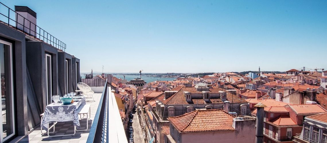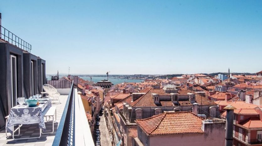 Location Lisbonne Chiado – Appartement 3 chambres avec Terrasse et Vue sur le Tage (jusqu’à 8 personnes)