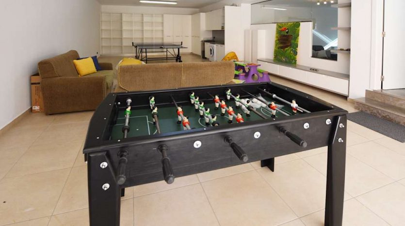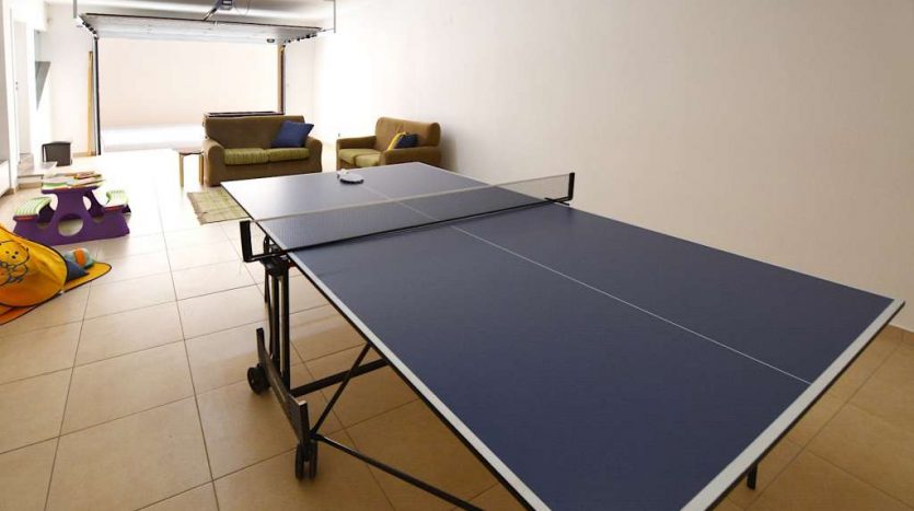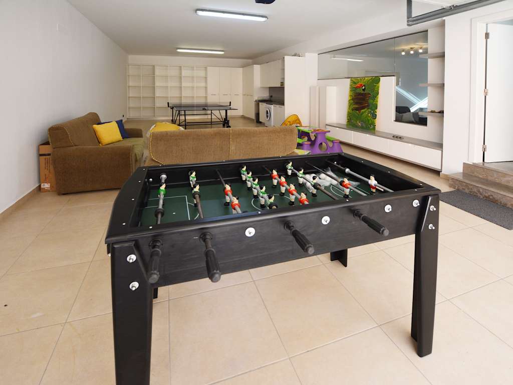 Salle de jeux avec buanderie, tennis de table et babyfoot, jouets pour enfants